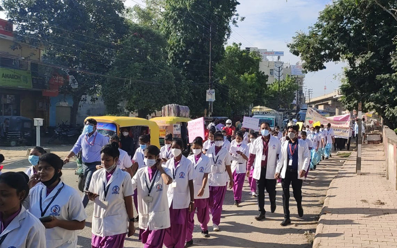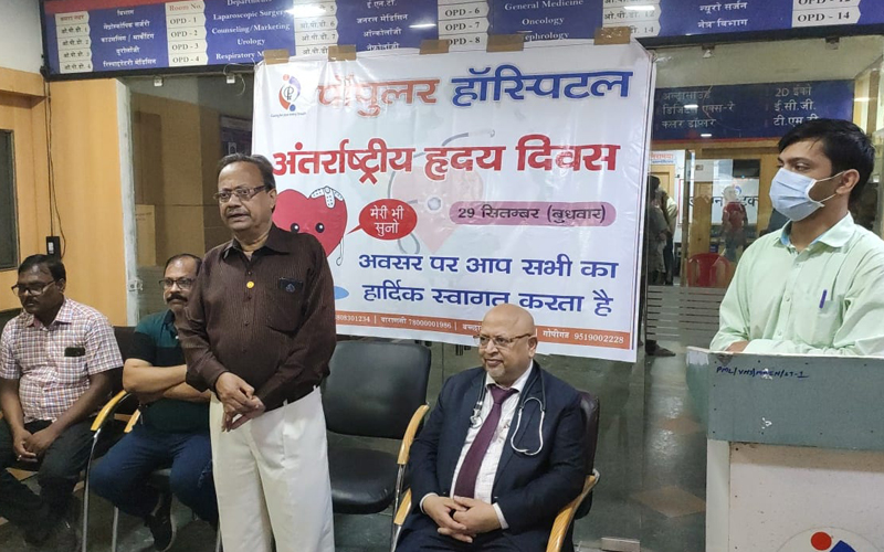 29th September - Jan Jagran rally organised by Popular Hospital Varanasi on World Heart Day. The rally was organized to make people aware about a healthy heart, the cardiac doctors and health workers of Popular Hospital, Dr. A.K. Kaushik, Chairman of Popular Group of Hospitals participated with full enthusiasm. The purpose of the rally was to make people aware of heart diseases and get them checked in time when symptoms appear.